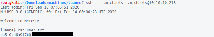 With that, we should be able to log in as r.michaels via SSH and retrieve user.txt.