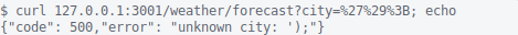 # curl http://10.10.10.218/weather/forecast?city=$(urlencode "');")