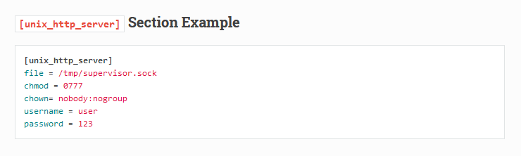 It’s trivial to uncover the default username and password (user:123) for Supervisor HTTP Server from the official documentation.